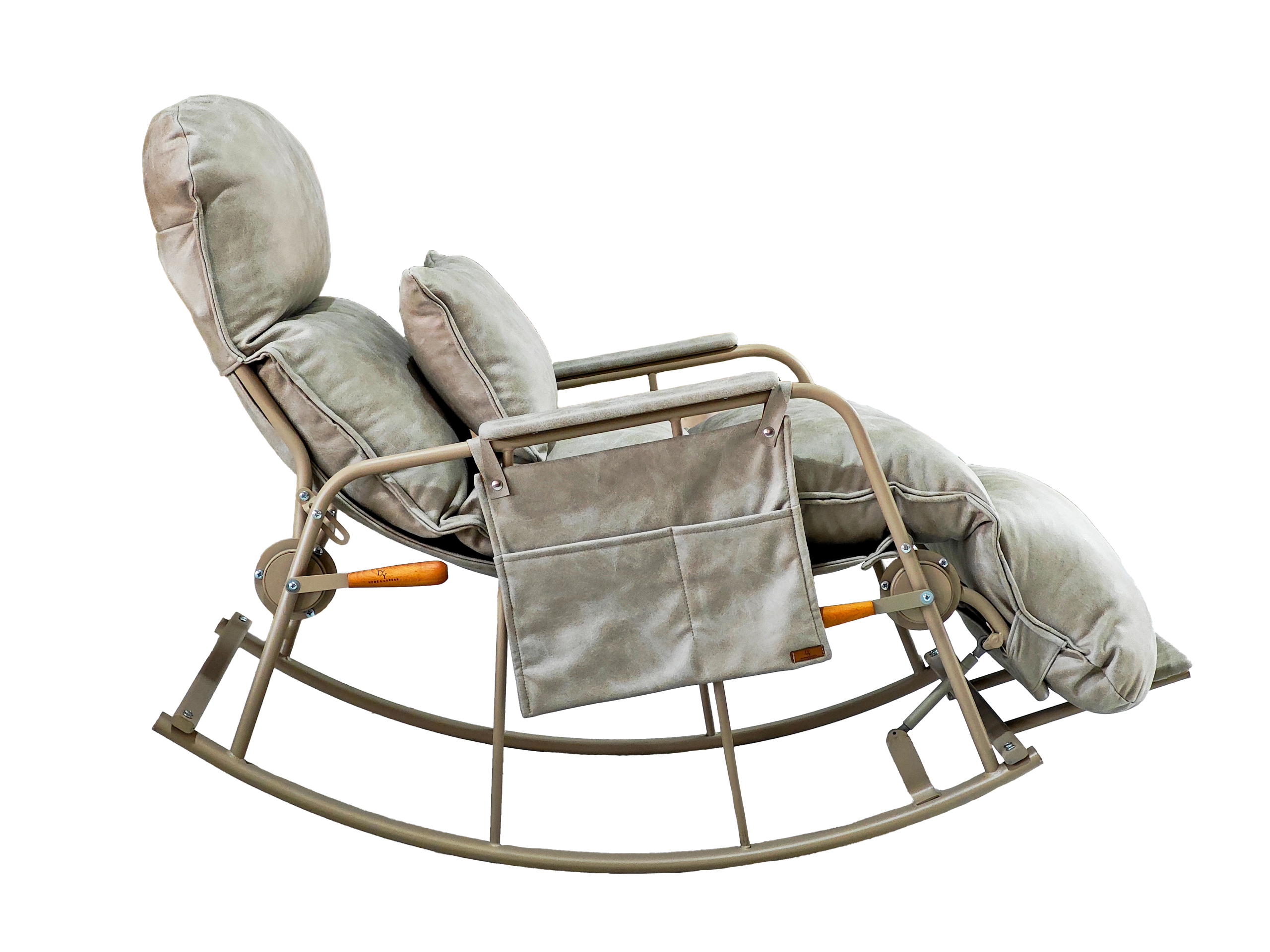 Manuel olarak ayarlanabilen sırt bölümü, farklı oturma ve uzanma pozisyonlarına kolayca uyum sağlar. Pistonlu bacak kaldırma mekanizması, ayakların zahmetsiz şekilde yukarı kaldırılmasına imkân tanıyarak vücut dolaşımını destekler ve dinlenme konforunu artırır. Sallanabilir gövde yapısı, rahatlatıcı ve dengeli bir oturum hissi sunar.